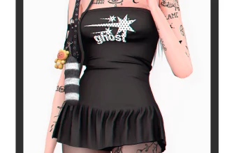Платье — Painting y2k mini Dress для Симс 4. Скачать мод
