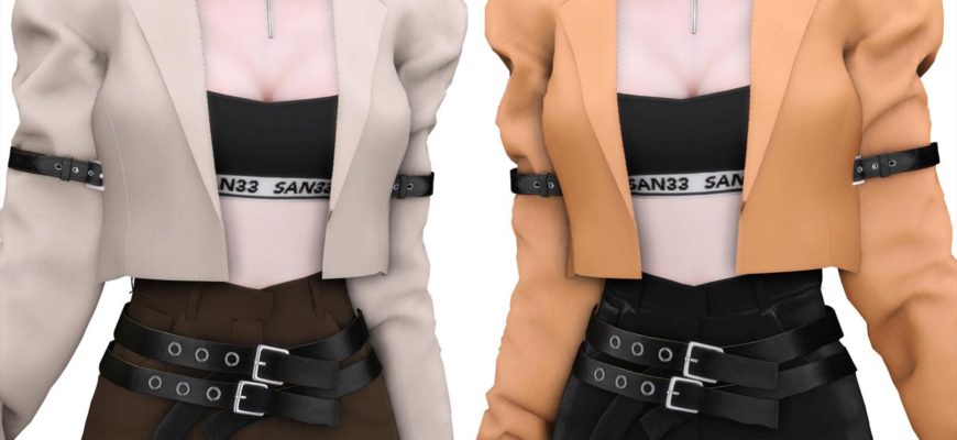 Главная » Одежда » Женская одежда 【333】Belt Suit+Top для Симс 4. Скачать мод Женская одежда Сет одежды от san33Костюм в 16 расцветках + топ в 16 расцветкахСКАЧАТЬ (.package)
