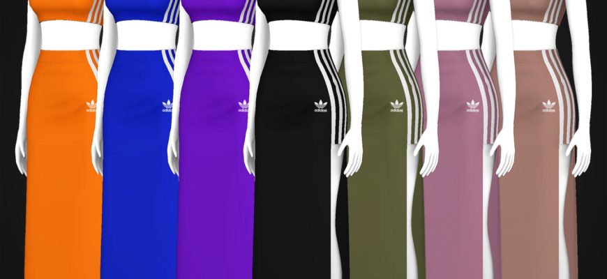 Главная » Одежда » В полный рост Adidas комплект (юбка + топ) by gorillax3 для Симс 4. Скачать мод В полный рост Комплект одежды Adidas в виде длинной юбки и топа без рукавов от GorillaX3. Несколько цветов. СКАЧАТЬ (.package)