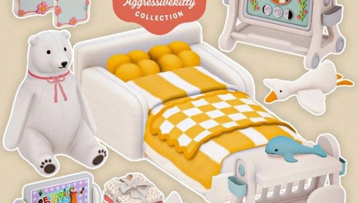 Этот весёлый набор CC включает в себя полностью функциональные предметы, включая уютную кроватку, очаровательных плюшевых игрушек, интерактивные игровые доски и красочный декор.