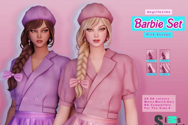 Главная » Лицо и прически barbie hair set — pink escape для Симс 4. Скачать мод Лицо и прически сет с волосами СКАЧАТЬ (.package)