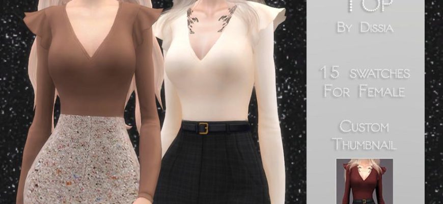 Главная » Одежда » Верхняя часть Блузка Amelia by Dissia для Симс 4. Скачать мод Верхняя часть Мод для Sims 4 — блузка для девушек различных цветов. СКАЧАТЬ (.package)