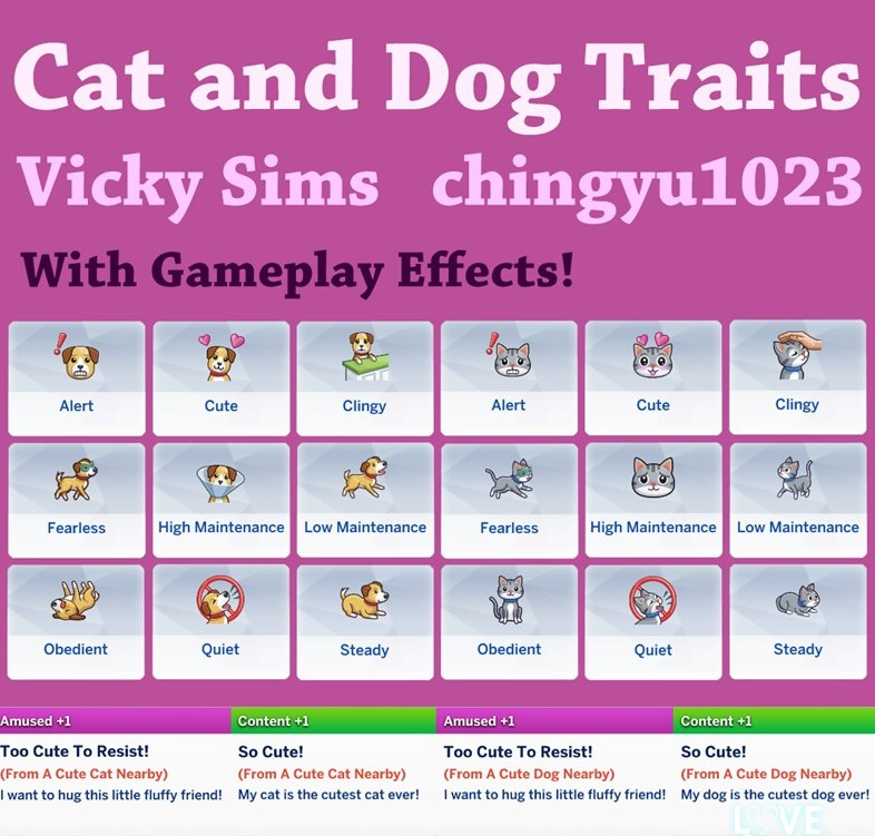 Представляем набор из 9 новых пользовательских черт, которые придадут уникальные характеристики вашим кошкам и собакам, а также добавят игровые эффекты.