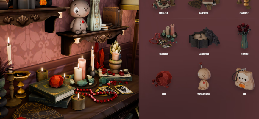 Декоративный набор для The Sims 4 добавит нотку мистической элегантности в жилища ваших персонажей благодаря таким детализированным предметам, как свечи, кристаллы, цветы и очаровательные плюшевые украшения.