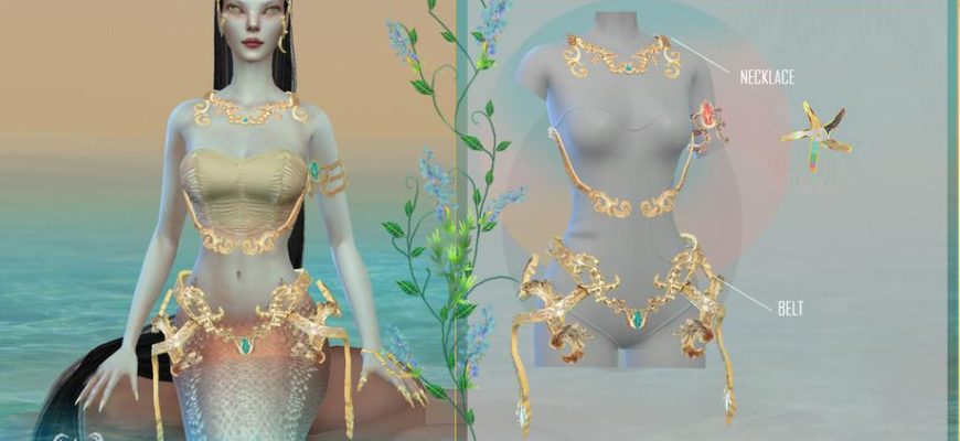 Главная » Одежда » Женская одежда DSF MERMAID BOTHRIECHIS SET для Симс 4. Скачать мод Женская одежда Красивый сет для русалочки. В набор входит: корона, браслет, хвост, топ, ожерелье и украшение для тела СКАЧАТЬ (.package)