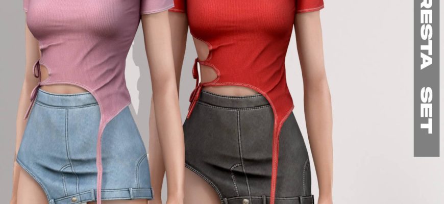 Облегающая футболка с завязками сбоку (30 ц.в.) + мини юбка-перевёртыш со смелым разрезом (20 ц.в.).