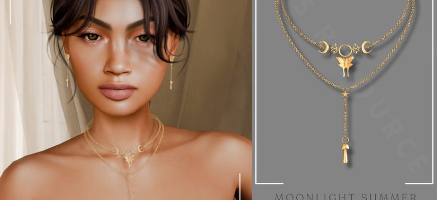 Главная » Одежда » Аксессуары Glitterberryfly — Summer Moonlit Necklace для Симс 4. Скачать мод Аксессуары Многослойное колье в виде мотылька из золота с подвеской в виде звезды. СКАЧАТЬ (.package)