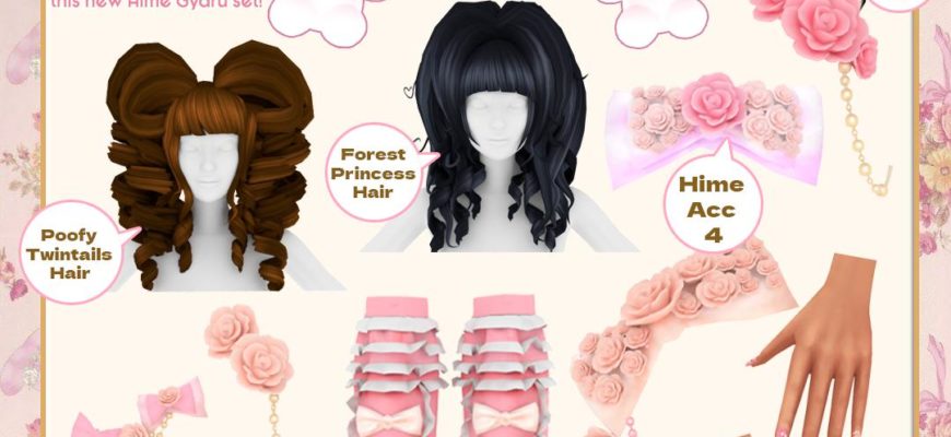сет включает в себя 10 предметов:: 2 причёски, рюкзак в двух вариациях, 4 аксессуара, маникюр и гетры! аксессуары и ногти имеют 5 вариаций, каждая прическа имеет все цвета от EA. вещи были сделаны aler-ii на тамблере 🙂