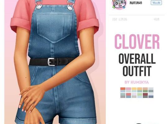 Джинсовый комбинезон-шорты с ремешком на талии + футболка с широкими рукавами. 12 цветовых образцов.
