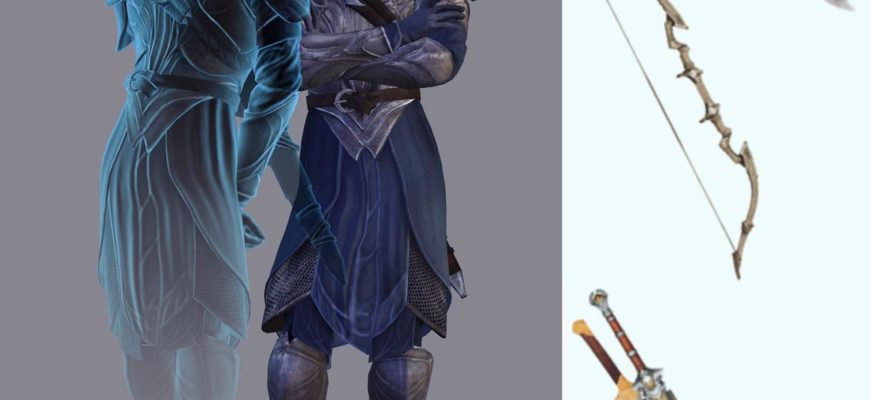 x Комплект содержит костюм и аксессуары (меч, топор, кинжал и лук для правой или левой руки, а также четыре варианта ножен, и два варианта колчана, и кушак).