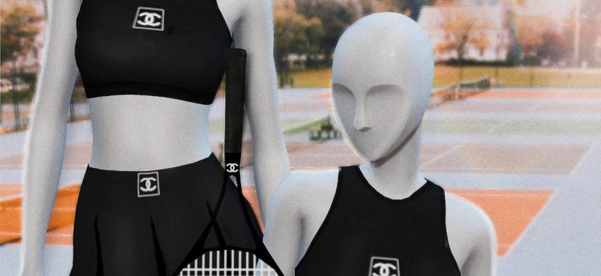 Главная » Одежда » В полный рост Комплект для тенниса CHANEL для Симс 4. Скачать мод В полный рост Спортивный козырек Спортивный бюстгальтер Юбка для тенниса СКАЧАТЬ (.package)