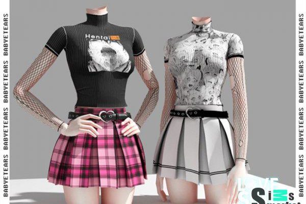 Главная » Одежда » В полный рост Комплект Heart skirt для Симс 4. Скачать мод В полный рост Юбка гармошка-короткая с кожаным ремешком в комплекте с водолазкой. СКАЧАТЬ (.package)