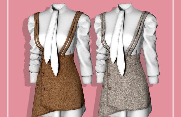 Главная » Одежда » В полный рост Комплект из платья и блузки by RIMINGS для Симс 4. Скачать мод В полный рост Женский комплект платья с блузкой и подтяжками / 16 цветов. СКАЧАТЬ (.package)