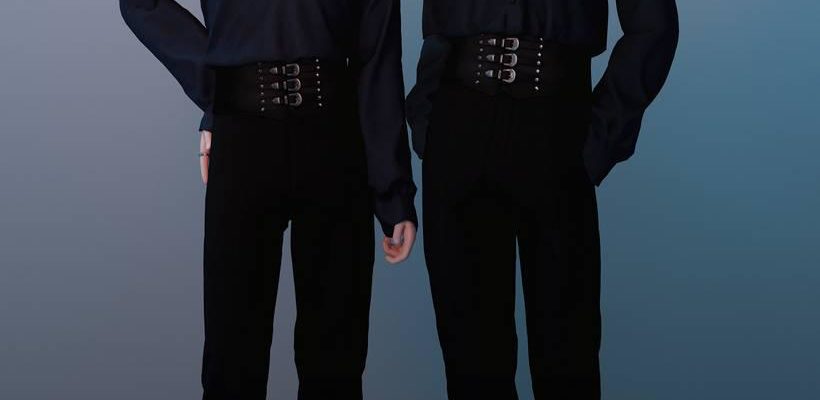 — стильные прямые брюки с широким ремнем на нескольких пряжках