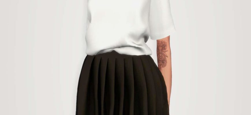 Главная » Одежда » В полный рост Комплект одежды «Loose Graphic Tee & Pleated Skirt» для Симс 4 для Симс 4. Скачать мод В полный рост Свободная футболка (137 ц.в.) + плиссированная юбка мини (28 ц.в.).Доступно для женщин. СКАЧАТЬ (.package)