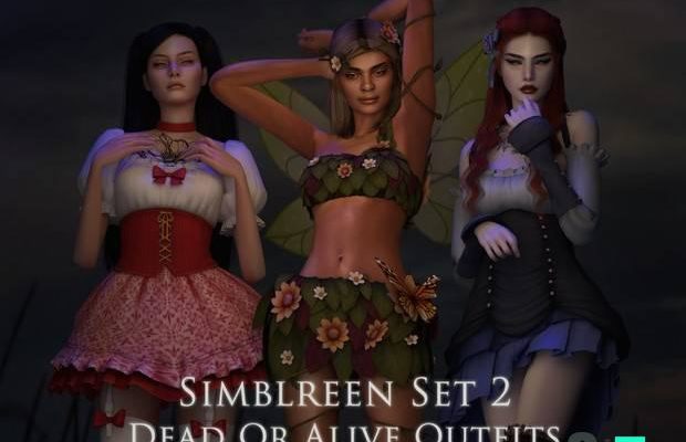 11 предметов гардероба: короткое пышное платье с корсетом на шнуровке и бантиком на груди (2 версии, 10 ц.в.), костюм лесной феи (2 версии, 10 ц.в.), платье с открытыми плечами и асимметричной юбкой (10 ц.в.), аксессуар для волос с цветами и листьями (2 версии, 10 ц.в.), аксессуар для волос с цветком и бантиком (10 ц.в.), черные чулки с рюшами в сеточку (1 ц.в., см. раздел "Носки") и крылья (2 вида, 10 ц.в., см. раздел "Кольца). HQ совместимо.