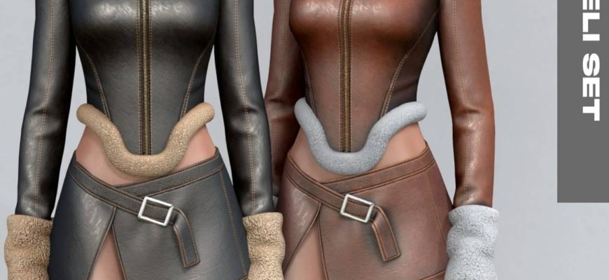 Главная » Одежда » Женская одежда Куртка и юбка «Yaneli Set» для Симс 4 для Симс 4. Скачать мод Женская одежда Укороченная приталенная кожаная куртка с меховыми деталями (30 ц.в.) и мини-юбка назапах с ремешком (10 ц.в.). СКАЧАТЬ (.package)