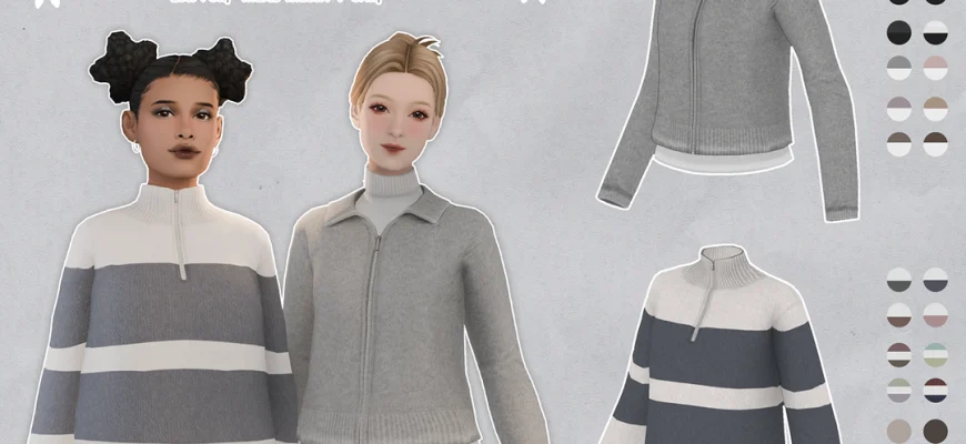 Главная » Одежда » Верхняя часть LINEVRA & MELANIA ZIP-UP CARDIGANS для Симс 4. Скачать мод Верхняя часть Автор aeneloria СКАЧАТЬ (.package)