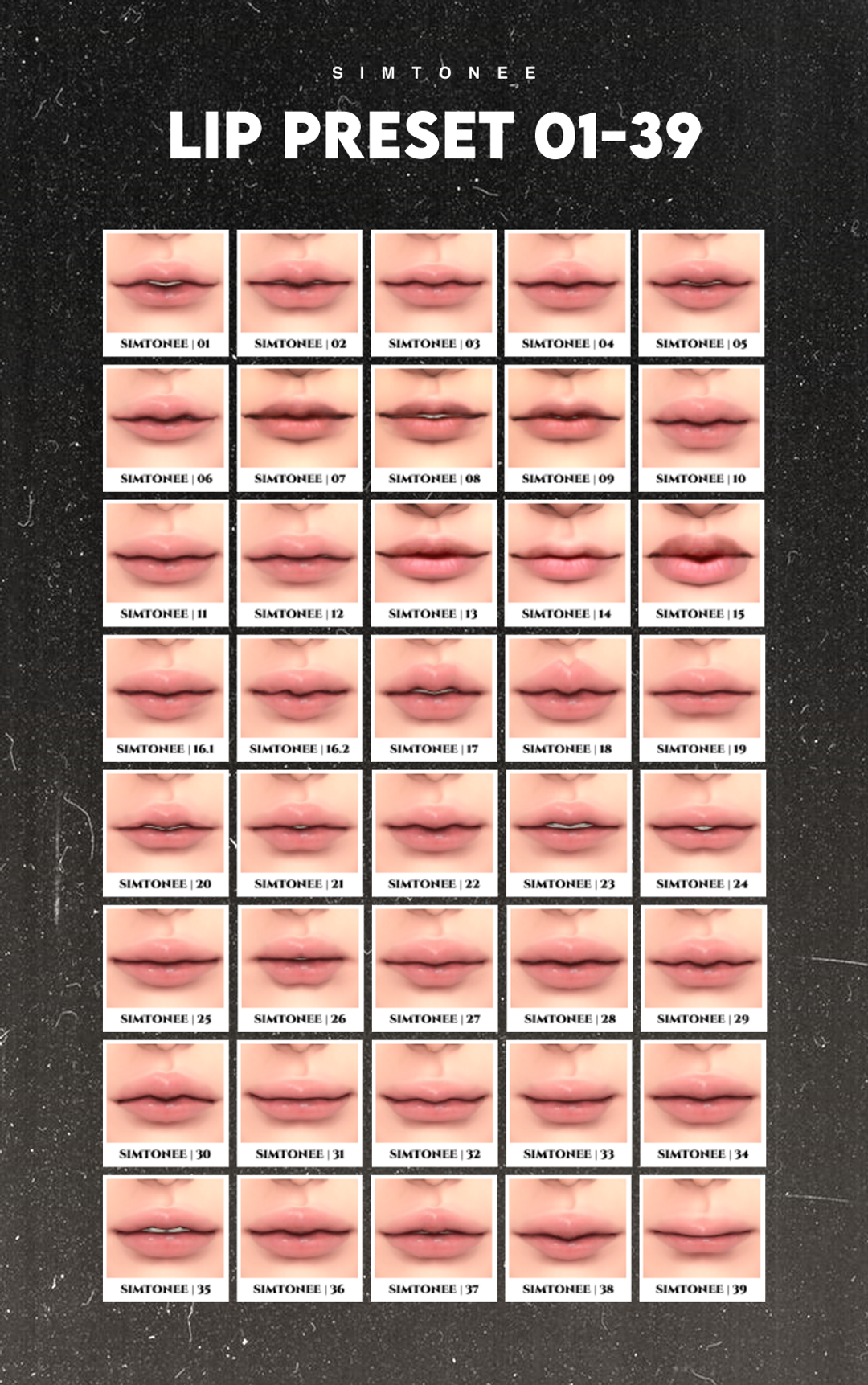 Lip Preset 01-39 для Симс 4. Скачать мод
