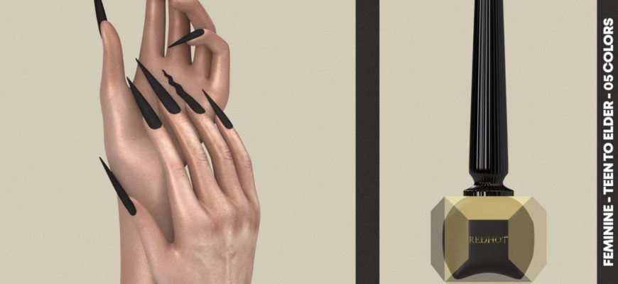 Однотонное покрытие на длинных острых стилетах с смоделированной волной на безымянном пальце в 5 цветовых образцах.