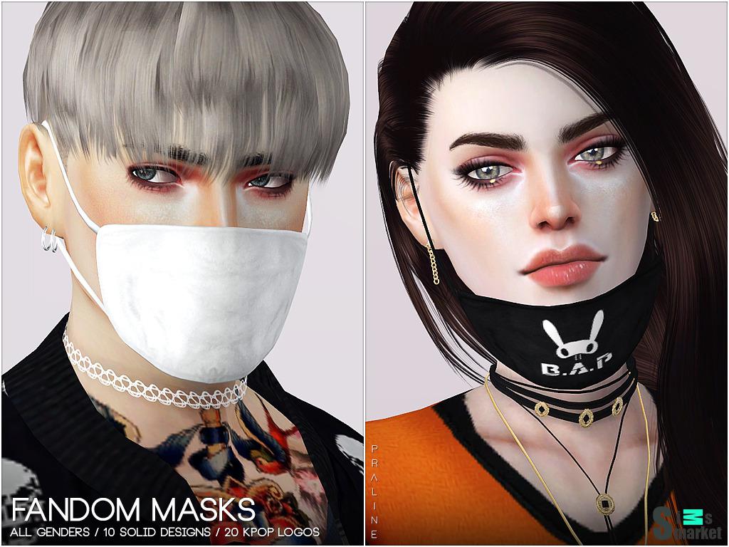 Мод для Sims 4 — крутейшие фанатские маски для обоих полов в высочайшем качестве, 10 сплошных окрасок, 20 вариантов логотипов к-поп групп
