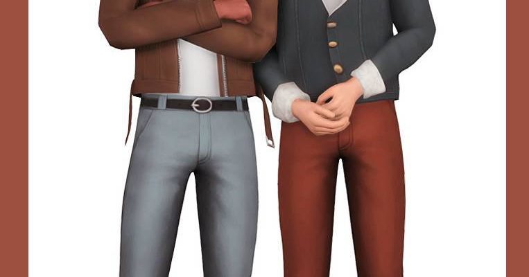 Мужской осенний CC пак из 4 объектов: джинсовая куртка с меховым воротником + водолазка (15 ц.в.), кожаная косуха + топ (15 ц.в.), короткие брюки с ремнем (15 ц.в.) и прическа (Maxis Match, 18 ц.в. частично совместима с головными уборами).