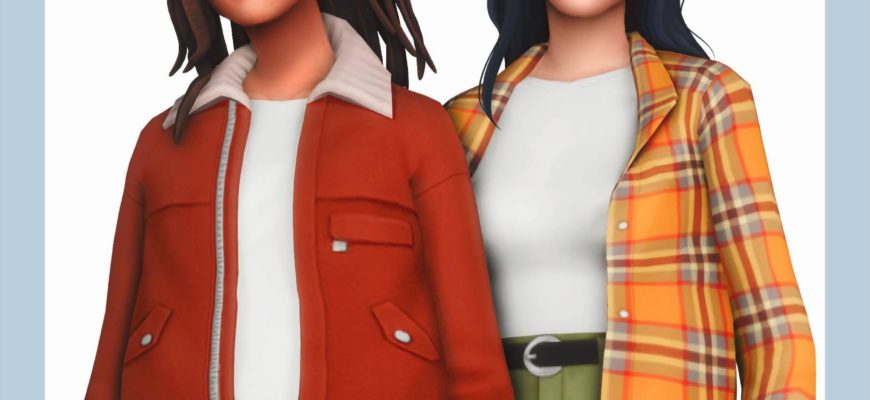 Набор одежды в стиле Maxis Match включает в себя: куртку с топом (25 ц.в.), рубашку с топом (20 ц.в.), джинсы (8 ц.в.) и юбку (10 ц.в.).