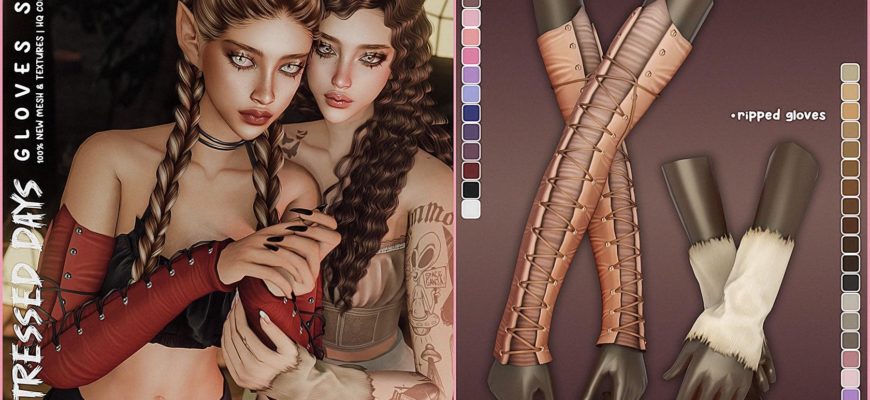 Главная » Одежда » Женская одежда Набор перчаток «Distressed Days Collection — Gloves Set» для Симс 4. Скачать мод Женская одежда 2 элемента:— длинные перчатки-корсеты (15 ц.в.)— рваные митенки (21 ц.в.)HQ совместимы. СКАЧАТЬ (.package)