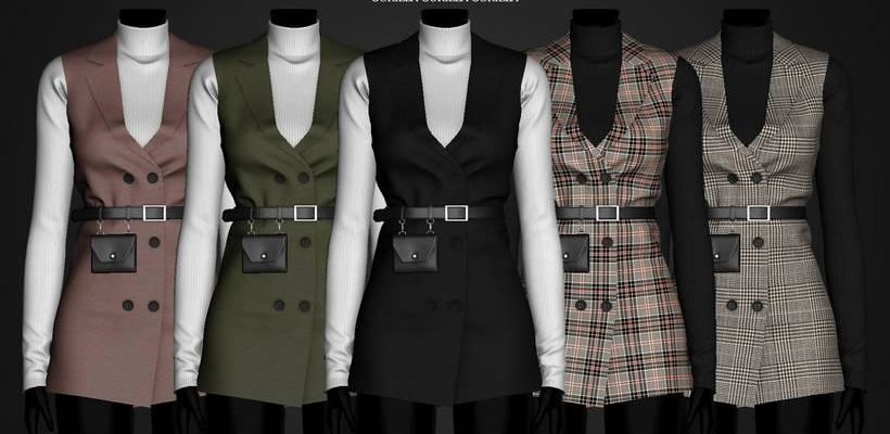 Стильное платье-жилет (см. раздел "В полный рост", 30 ц.в.) + классическая водолазка (см. раздел "Перчатки", 15 ц.в.) с поясом на талии и дополнительной мини-сумочкой (см. раздел "Браслеты", 10 ц.в.).
