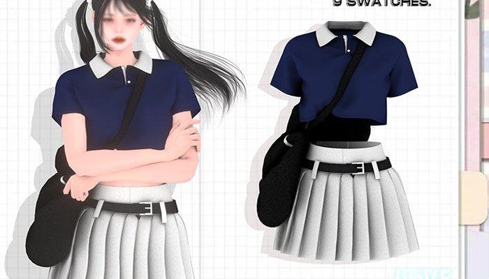 Женская рубашка-поло и плиссированная юбка с ремешком, доступно 9 цветов. Оригинальное название Polo Fir And Skirt от LIN_DIAN.