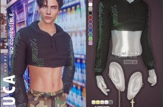 PEACH | Luca Cropped Hoodie & Earrings для Симс 4. Скачать мод