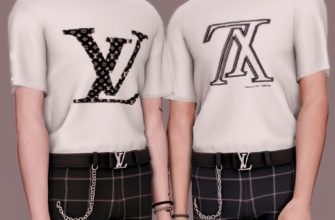 Short-sleeved Basic T-shirt & Belt & Chain Slim Fit Pants by RIMINGS для Симс 4. Скачать мод