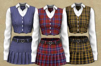 Женский костюм «Vest Layered Shirt And Heart Belt Pleat Skirt» для Симс 4 для Симс 4. Скачать мод