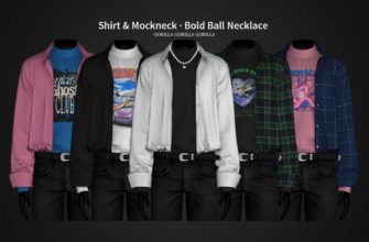 Комплект для сима «Shirt & Mockneck Bold Ball Necklace» для Симс 4 для Симс 4. Скачать мод