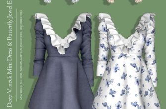 [RIMINGS] Ruffle Deep V-neck Mini Dress & Butterfly Jewel Earring для Симс 4. Скачать мод
