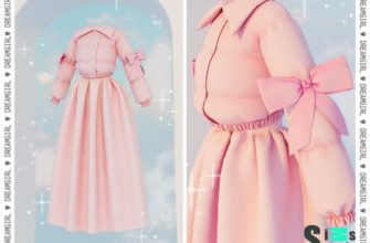 пуховик с бантиками и длинной юбкой для Симс 4. Скачать мод