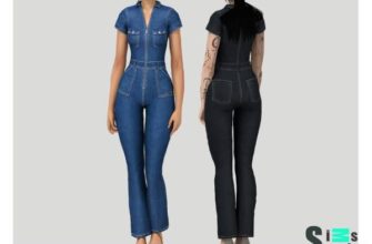 Женский комбинезон «denim jumpsuits» для Симс 4 для Симс 4. Скачать мод