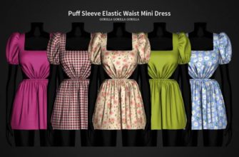 Платье «Puff Sleeve Elastic Waist Mini Dress» для Симс 4 для Симс 4. Скачать мод