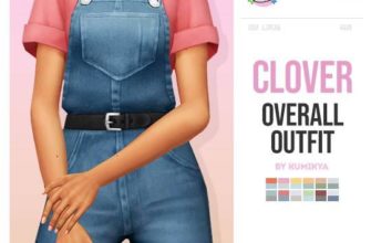 Комбинезон и футболка «CLOVER OVERALLS OUTFIT» для Симс 4 для Симс 4. Скачать мод