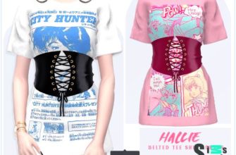 Платье hallie belted by grafity-cc для Симс 4. Скачать мод