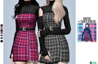 Платье и водолазка «dress + turtleneck» для Симс 4 для Симс 4. Скачать мод