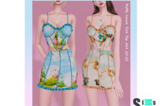 Топ и юбка ruffle corset by sunberry для Симс 4. Скачать мод