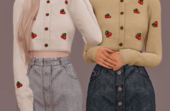 [rimings] cherry patch crop cardigan & high-waist mini d для Симс 4. Скачать мод