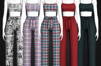Топ и штаны «Crop Top And Tie Waist Pants» для Симс 4. Скачать мод