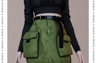 RUCHED LONG SLEEVE ・BELT UTILITY SKIRT для Симс 4. Скачать мод