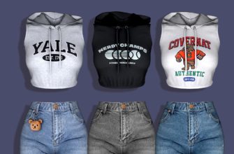 Топ и шорты для симочки «Sleeveless Crop Hoodie & Bear Keyring & Short Denim» для Симс 4. Скачать мод