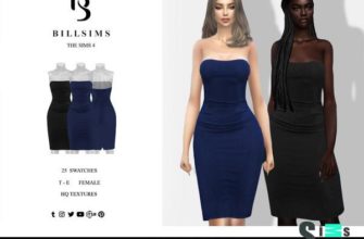 Платье миди-бандо со вставками для Симс 4. Скачать мод