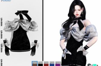 Бархатное платье и перчатки для Симс 4. Скачать мод