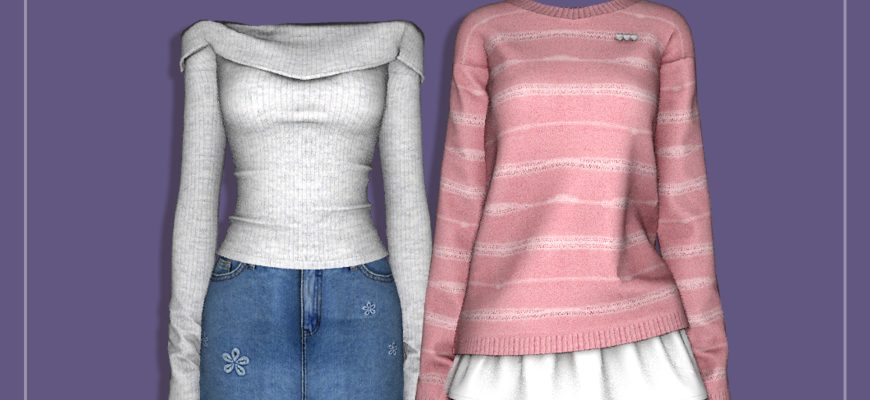 Главная » Одежда » Женская одежда Off-shoulder Sweater / Floral Embroidery Denim Skirt / Oversized Sweater & Ruffle Skirt для Симс 4. Скачать мод Женская одежда Автор RIMINGS FULL BODY / TOP / BOTTOM СКАЧАТЬ (.package)