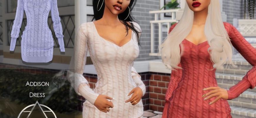 Главная » Одежда » В полный рост Платье Addison by Camuflaje для Симс 4. Скачать мод В полный рост Мод для Sims 4 — платье для девушек с длинными рукавами. СКАЧАТЬ (.package)